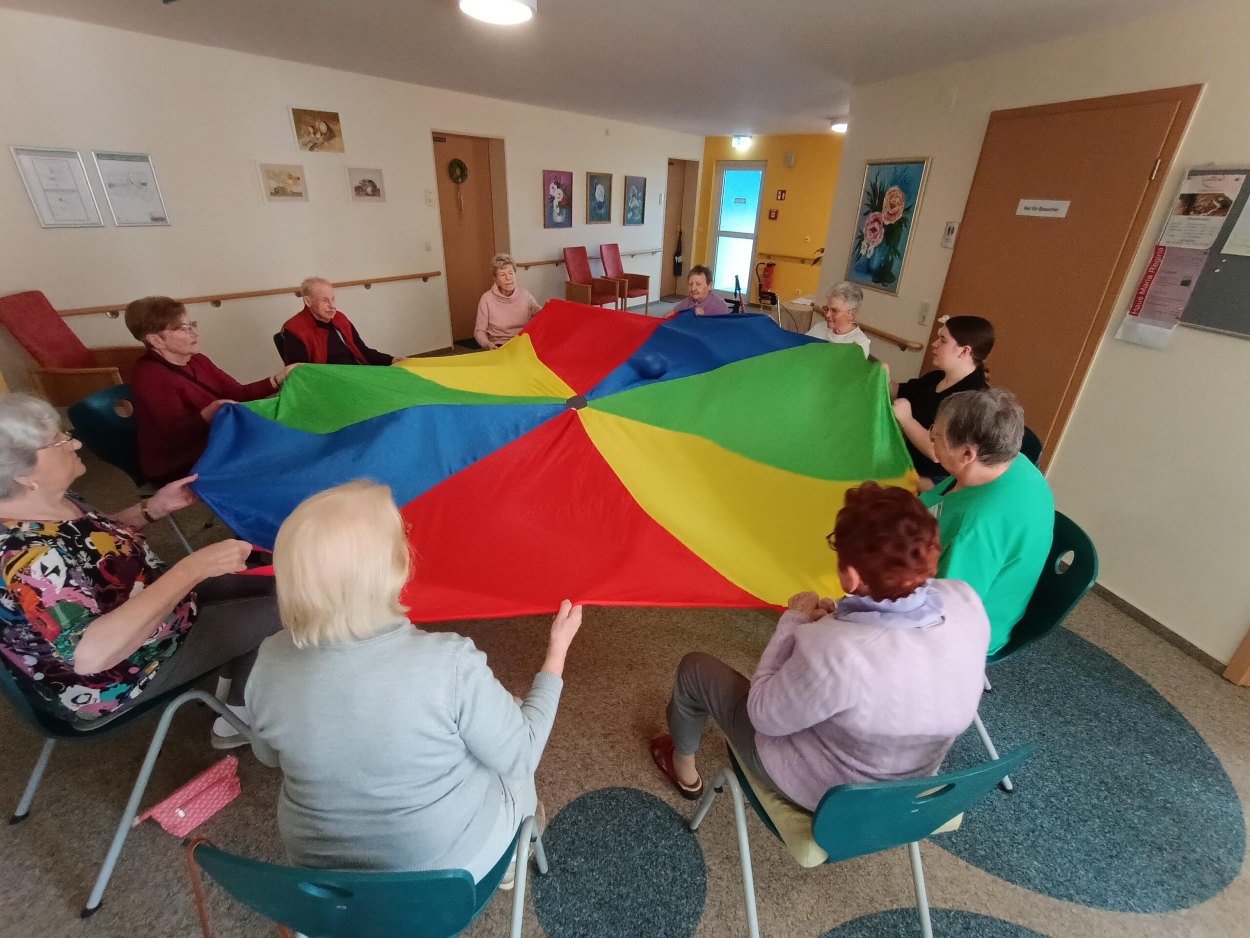 09.04.2026: Unsere Betreuungsmitarbeiterin Anja Kaufmann-Rabel startete im Service-Wohnen mit Gymnastik in den Tag.