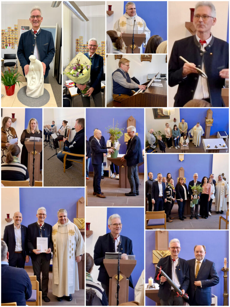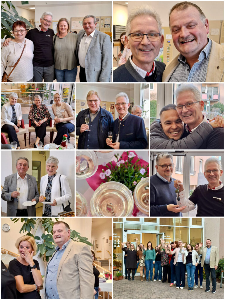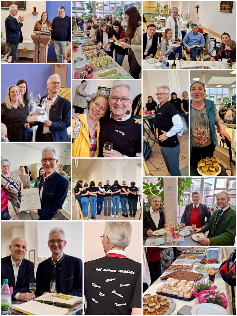 Nachfolgende Collagen sprechen für einen bewegten Nachmittag mit einem Wortgottesdienst, einer besonderen Ehrung, wertschätzende Ansprachen, persönliche Worte und Wünsche, einem leckeren Buffet, dankbaren Umarmungen, liebevoll ausgesuchte Geschenke und die ein oder andere Träne …