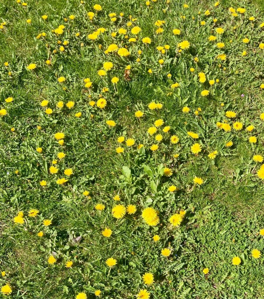 Auch unser mit Löwenzahn überhäufter Grünstreifen an unseren Parkflächen zeigt einen farbenfrohen Blütenteppich, bevor der Rasenmäher seinen Dienst antritt.