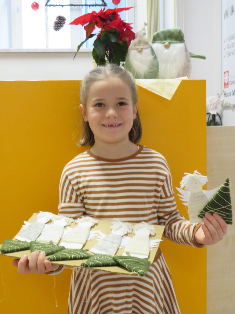 Am Ende hatte Ella mit ihrer Oma eine Engelschar mit vielen kleinen Christbäumchen um sich herum.