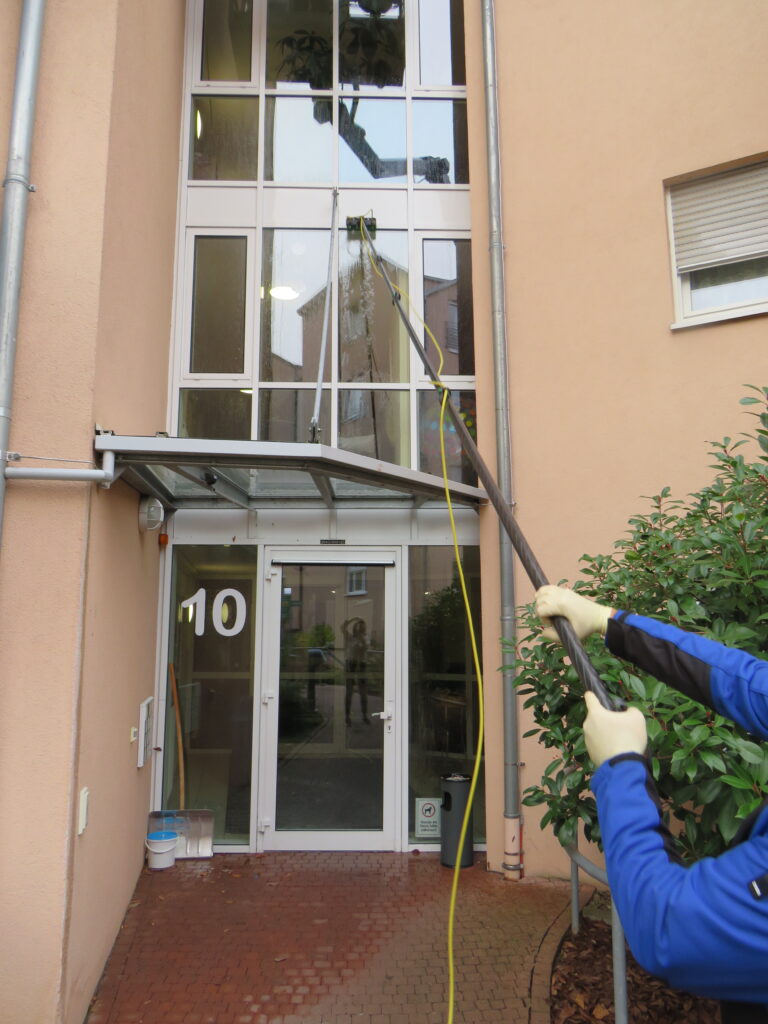 … erledigte ein weiterer mit einem verlängerten Arm das Vordach und die unteren Fenster.