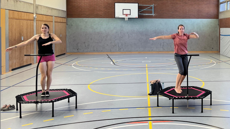 Bereits im Juli diesen Jahres wurde „Jumping Fitness“ angeboten. Diese Sportart ist ein schweißtreibendes Cardio-Workout, das Aerobic-Elemente, Dance-Moves und kleine Sprünge miteinander kombiniert. Das alles zu fetziger Musik auf einem sechseckigen kleinen Trampolin.