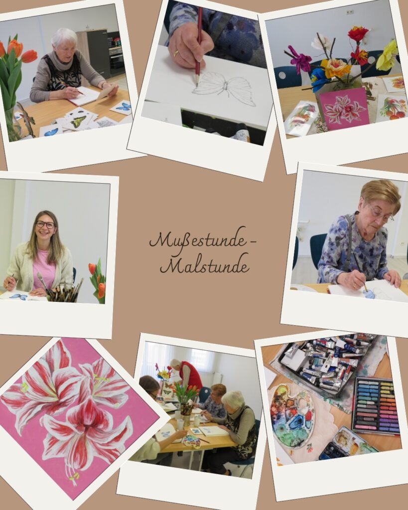 Erstmalig boten wir für unsere MieterInnen im Servicewohnen das Angebot „Malen mit Rita Stern“ an. Die Rüdenauer Künstlerin hatte für diesen kreativen Nachmittag eine Vielzahl an Farben, Pinsel, Malblöcken und Inspiration mit im Gepäck.