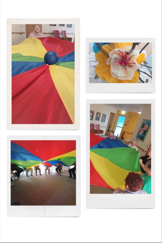 Aber natürlich dürfen die bekannten Sitztänze nicht fehlen. Jetzt im Frühling immer mit dabei die „Tulpen aus Amsterdam“. Um auch die kognitiven Fähigkeiten zu trainieren, spielte Sr. Anja mit den Senioren „ich packe meinen Koffer“. Am Ende der Stunde wurden dann nochmal alle „eingepackten“ Dinge aufgezählt.