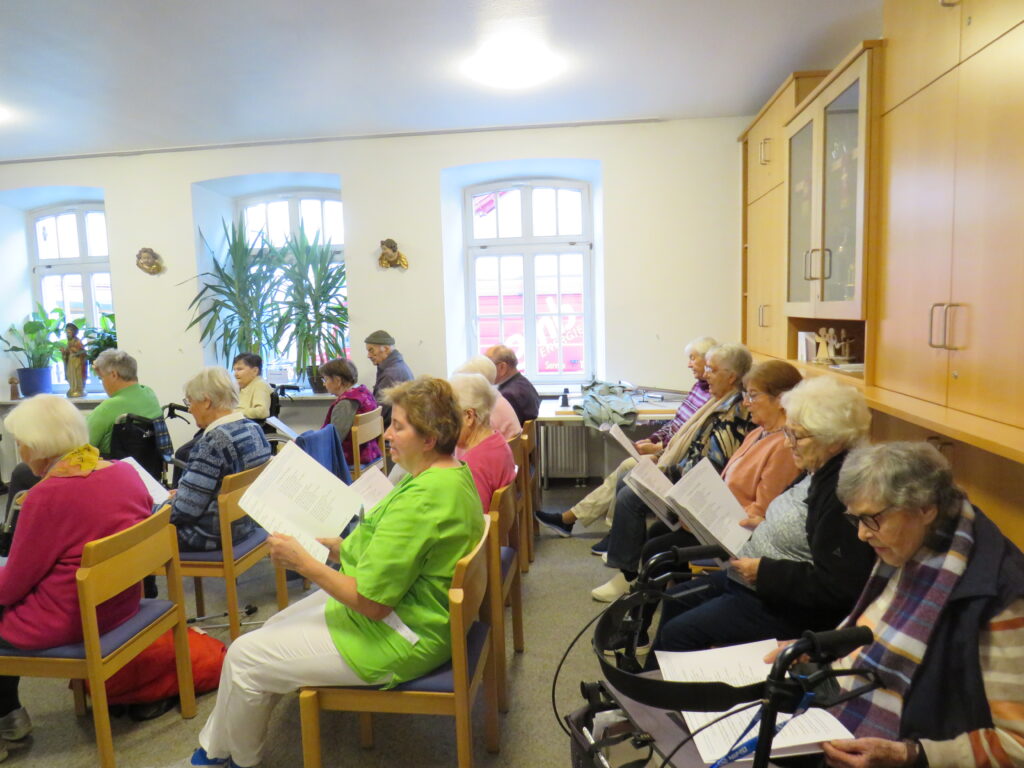 Unsere Senioren sind sehr begeistere SängerInnen, die Herrn Schmitt gerne mit ihrem Gesang unterstützen.