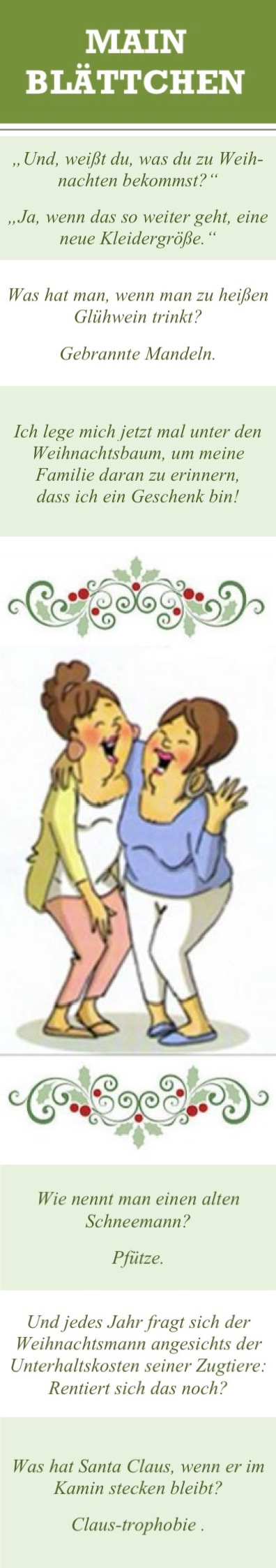 Auch in der Dezember-Ausgabe unseres hauseigenen Main-Blättchens wurden die Witze-Freunde unter unseren Senioren nicht vergessen.