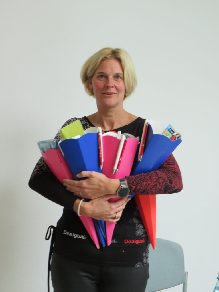 Sieben Schultüten waren mit einem Block, Kugelschreiber, Schwesternuhr, einem Glückswürmchen, kleinem Duschgel und Süßem gefüllt. All‘ dies soll ein Zeichen unserer Wertschätzung für ihre bevorstehende Ausbildungszeit sein.