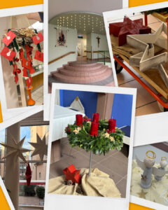 In den Wohnbereichen und im Servicewohnen wurde in den letzten Tagen schon fleißig für die weihnachtliche Dekoration gearbeitet. In der Kapelle steht unser Adventskranz, bei dem im Gottesdienst am Samstag die erste Kerze angezündet wurde.
