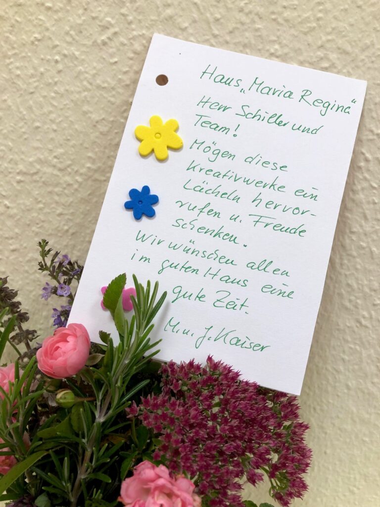 Liebe Besucher unseres Hauses. Nehmen Sie gerne diese liebevoll bemalte oder geschriebene Kreativwerke mit nach Hause. Sie liegen an unserem Empfang für Sie bereit.